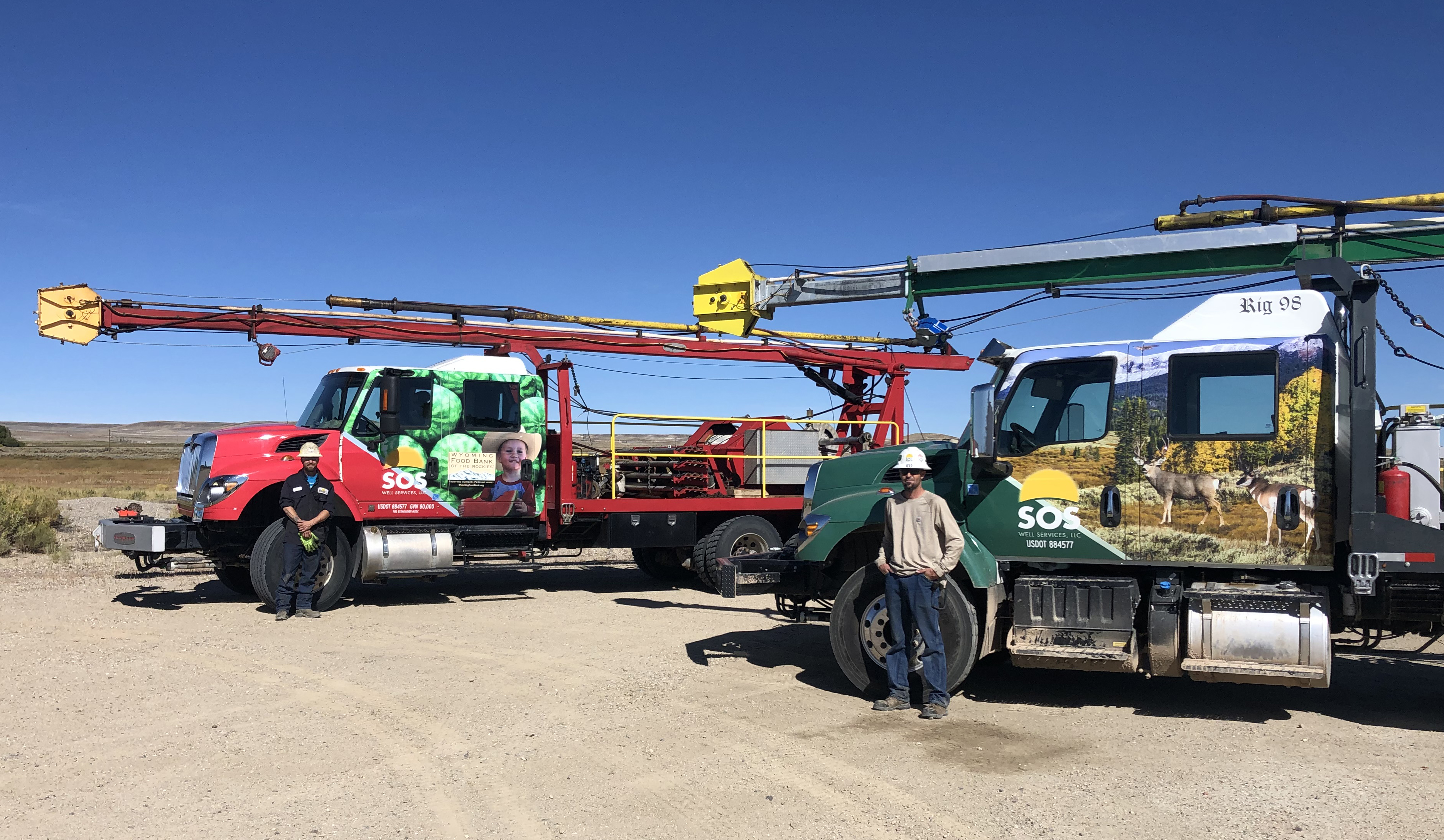 The “Wyoming Food Bank Swab Rig” is the second initiative SOS has put in motion, in their commitment to give back to the community. The first effort, the “Wildlife Conservation Swab Rig,” is wrapped with a wildlife theme and SOS donates a percentage of its yearly revenue to the Wildlife Conservation Fund in Wyoming. “SOS Well Services wants to ensure a strong, family-friendly Wyoming, where people and the environment come first,” emphasized Mike Schmid, president of SOS Well Services.
